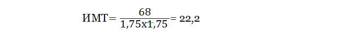Степень снижения массы тела определяют по индексу Кетле: вес в килограммах делят на двойной рост в метрах. Например, человек весит 68 кг, а его рост 1,75 м: